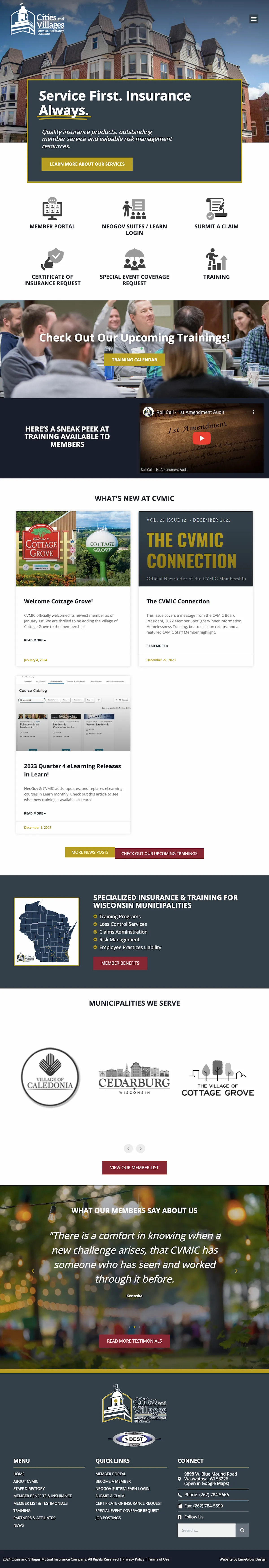 Cities and Villages Mutual Insurance Company (CVMIC) is dedicated to developing and maintaining high-quality, stable, affordable insurance and risk management services; supporting public services and serving the needs of its member owners.