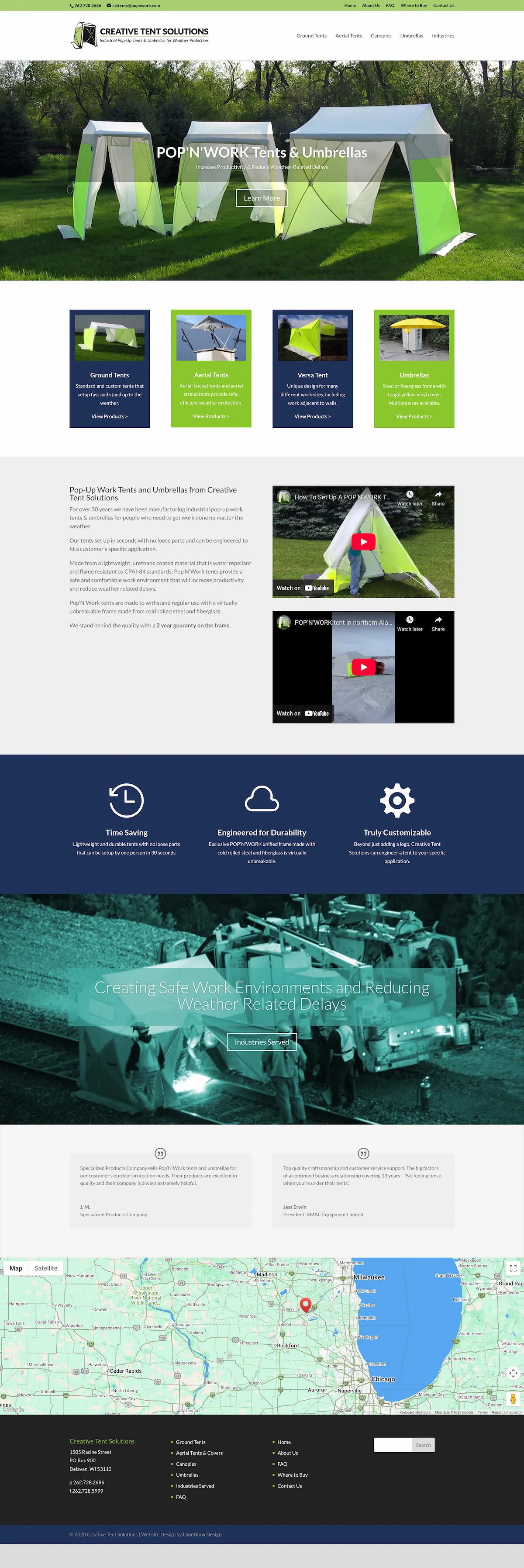 For over 30 years Creative Tent Solutions has manufactured industrial pop-up work tents & umbrellas for people who need to get work done no matter the weather.
