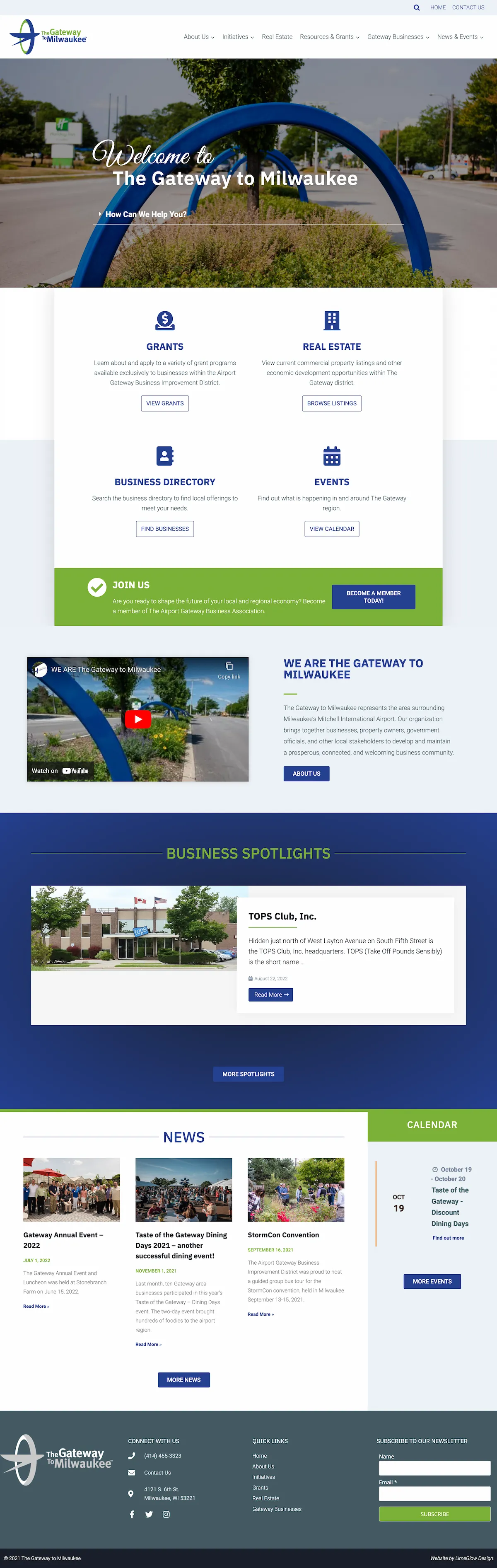 The Gateway to Milwaukee selected LimeGlow to design and develop a new website for their organization in 2021. The site showcases local businesses via an online directory, highlights events, and provides access to online grant applications.