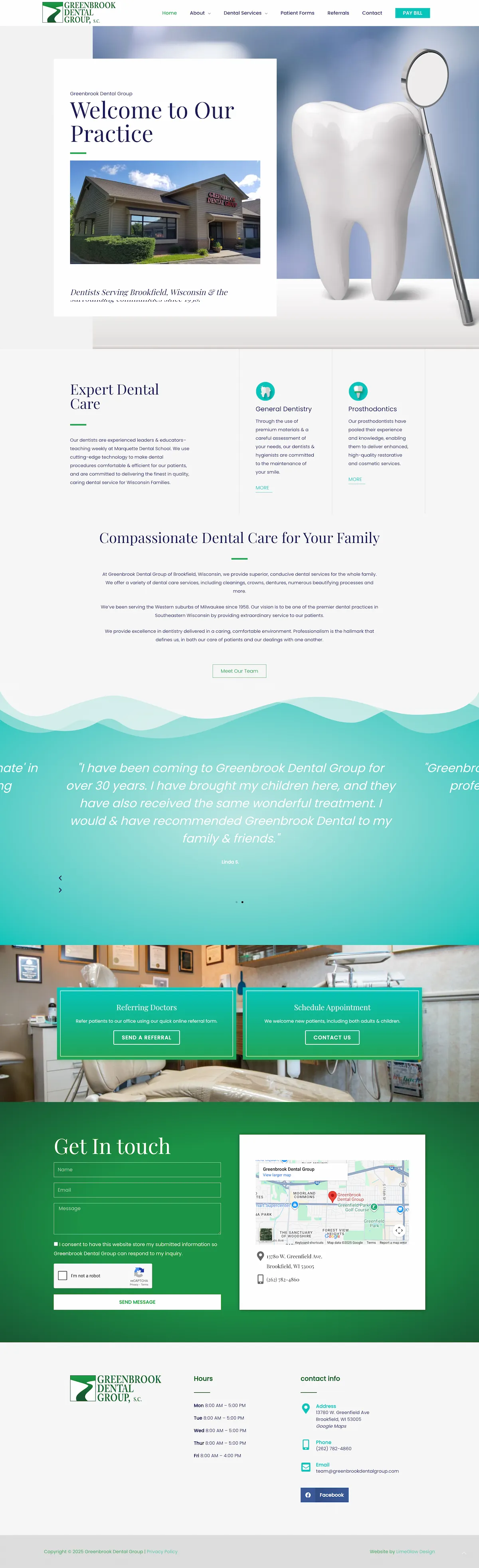 Greenbrook Dental Group selected LimeGlow Design to develop a new website for their dental practice in 2019. During the project, LimeGlow also provided on-site photography services to capture photos of the Greenbrook team & clinic.