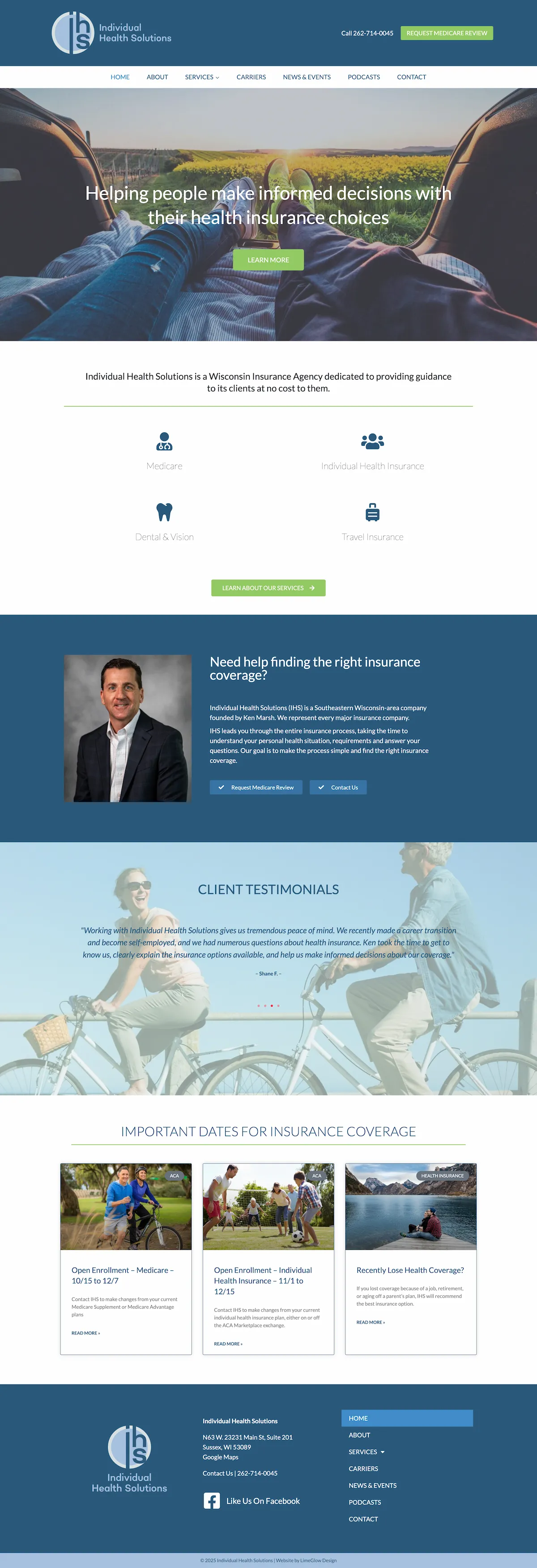 Individual Health Solutions selected LimeGlow Design to create their website, company logo and marketing communication materials.