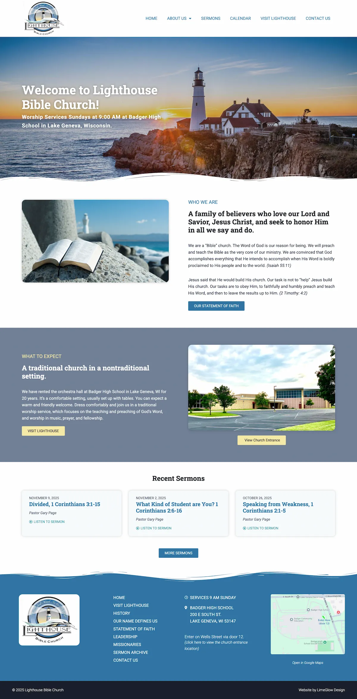 Lighthouse connected with LimeGlow about producing a brand new website for their church, and LimeGlow was eager for the opportunity. The site communicates the church’s mission, to be a light to the world, through the consistent lighthouse imagery, and includes pages for the church’s doctrine, leadership, and missionaries