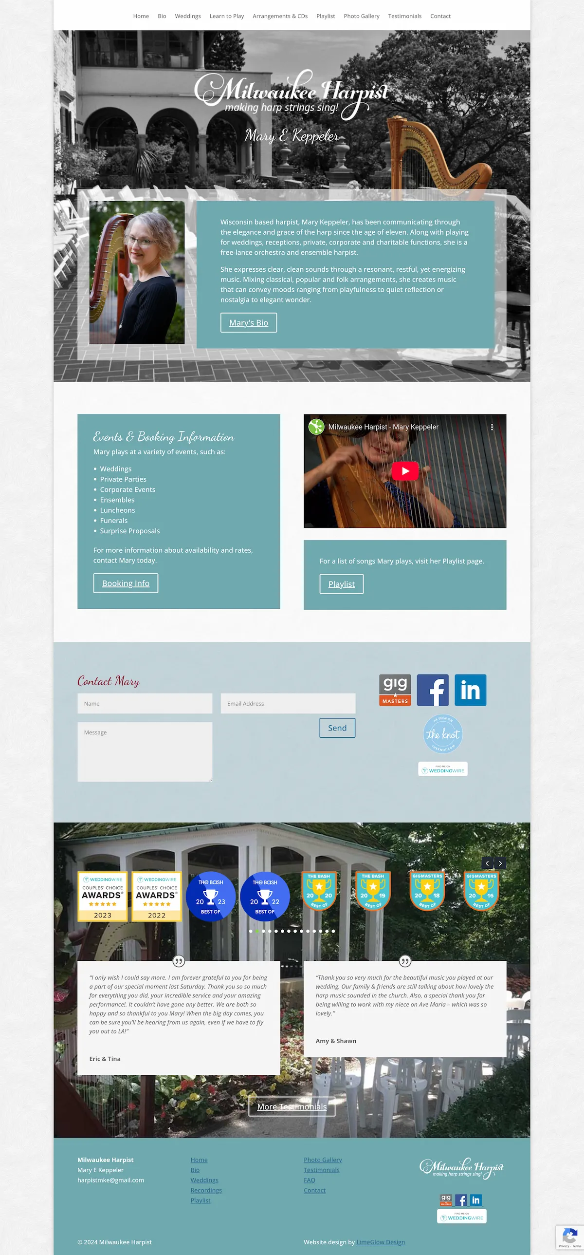 Milwaukee Harpist Mary Keppeler plays for weddings, receptions, and a variety of other events, and she is a free-lance orchestra and ensemble harpist. LimeGlow Design was pleased to design and develop the new Milwaukee Harpist website. During the project, LimeGlow also created a refreshed Milwaukee Harpist logo design.
