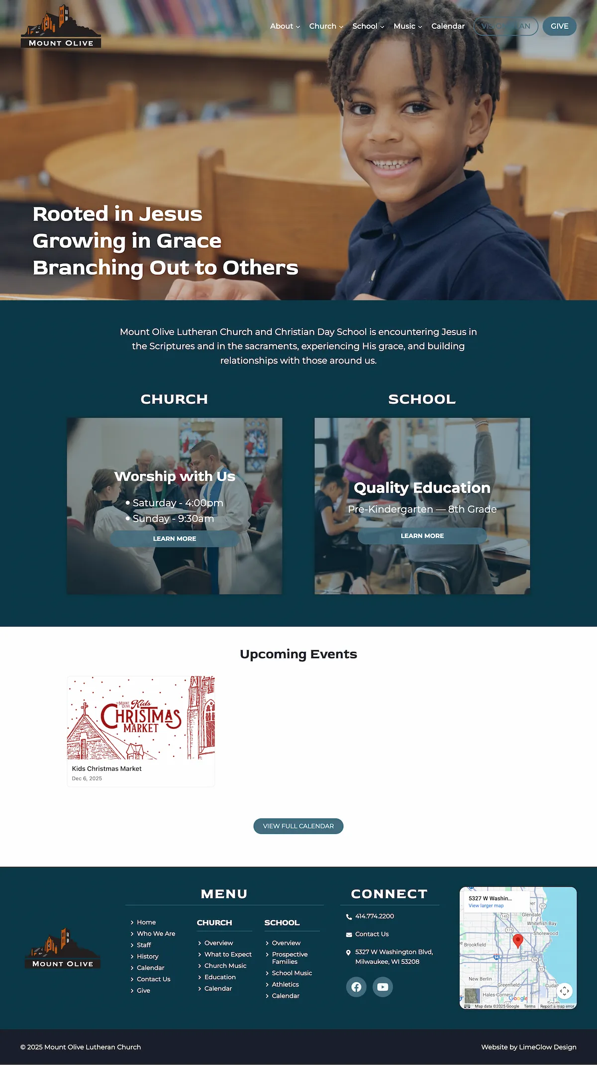 Mount Olive came to LimeGlow looking for a new website for their church and school. The site showcases their academic and spiritual pursuits for any potential attendees. LimeGlow helped Mount Olive elevate their online presence with an approachable, optimized website that perfectly met their needs.